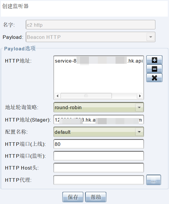 设置监听器,这里要注意端口为80,host为我们刚刚在API网关中的地址,注意需要删除前面的http及后面的:80